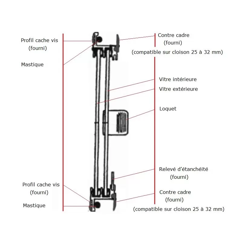 - Contre-cadre non-fournis : Pour cloison épaisseur 25 à 35 mm