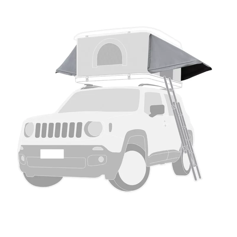 Elle permet d’avoir une petite zone d’ombre supplémentaire et protège l’entrée immédiate de la tente de toit des intempéries, vous évitant de mouiller l’intérieur quand vous entrez ou sortez de la tente.