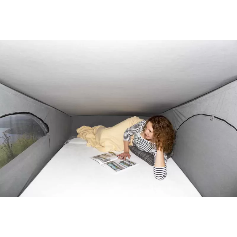 L’isolant pour toit relevable Mark V s’utilise de -5°C à +45°C et peut également s’ouvrir pour faire circuler l’air et aérer ainsi votre literie. Facile à installer, la partie basse et haute s’installent à l’aide de bandes velcro tout autour de votre lit. Les supports de fixation hauts sont solidement fixés dans la jointure avant de la garniture de toit.