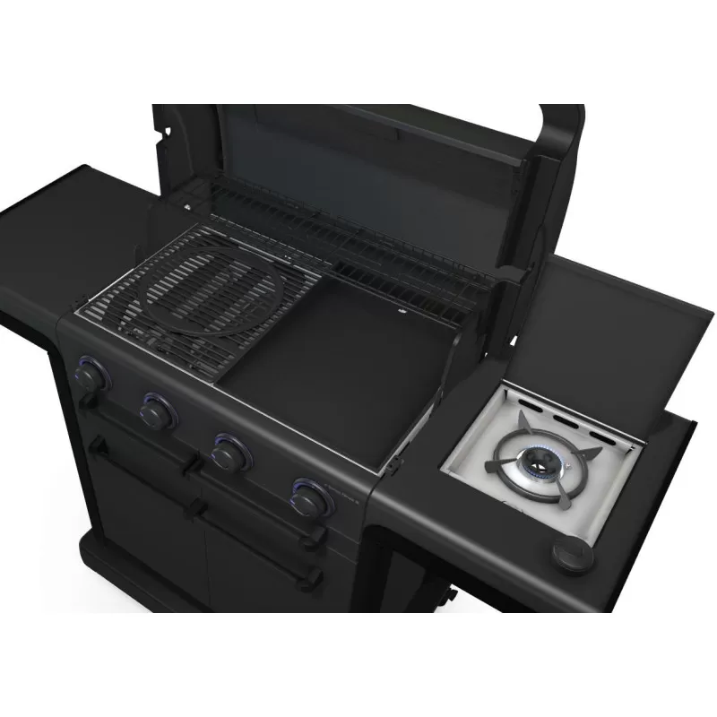 Barbecue gaz de très haute qualité de fabrication et de finition, le Onyx 4 S de CAMPINGAZ est le haut de gamme de la marque : InstaClean Pro, réchaud latéral, 4 roues cachées par carter, allumage auto sur bouton rétro-éclairées LED ! Le top pour la maison ou terrasse du mobil-home !