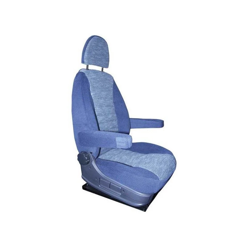 Housse de protection complète de CARBEST universelle avec accoudoirs et appuie-tête pour les sièges et fauteuils avant (passager et conducteur) des camping-cars et fourgons aménagés. Parfait notamment pour les Ducato, Jumper et Boxer mais aussi bien d’autres ! Coloris bleu foncé et gris.