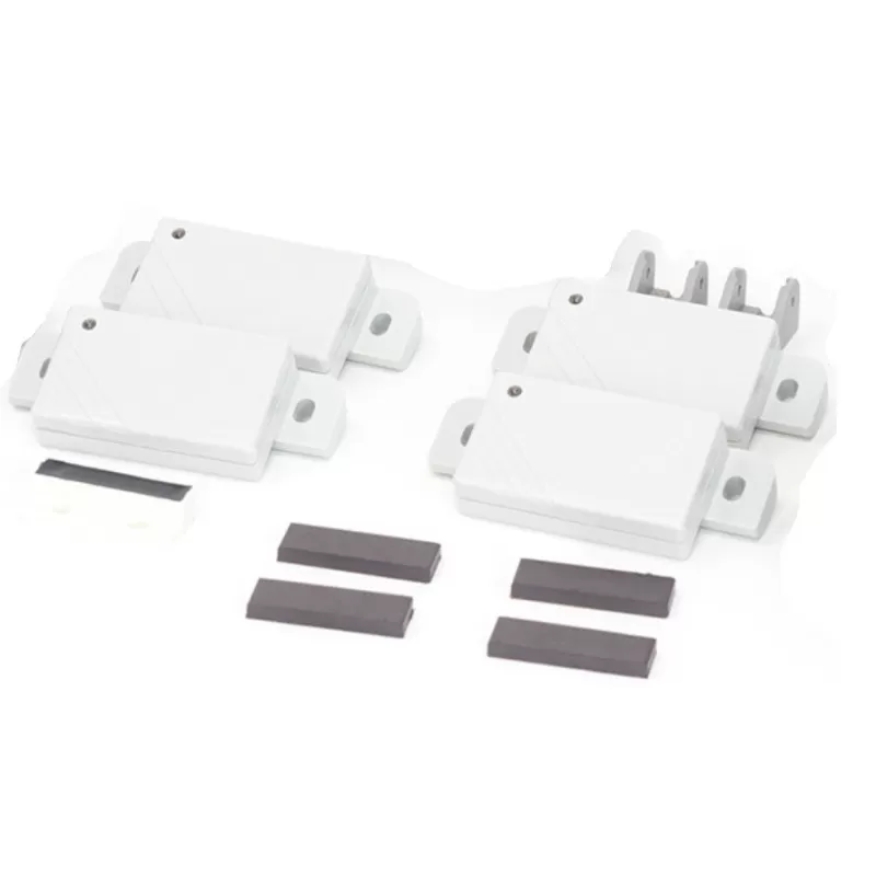 Contacteur magnétique de CNA pour porte, baie et fenêtre de camping-car, van et fourgon aménagé. Permet de détecter un mouvement de l’ouverture afin d’actionner l’alarme antivol HPS 844. Fonctionnement sur pile et connexion sans fil à la centrale.