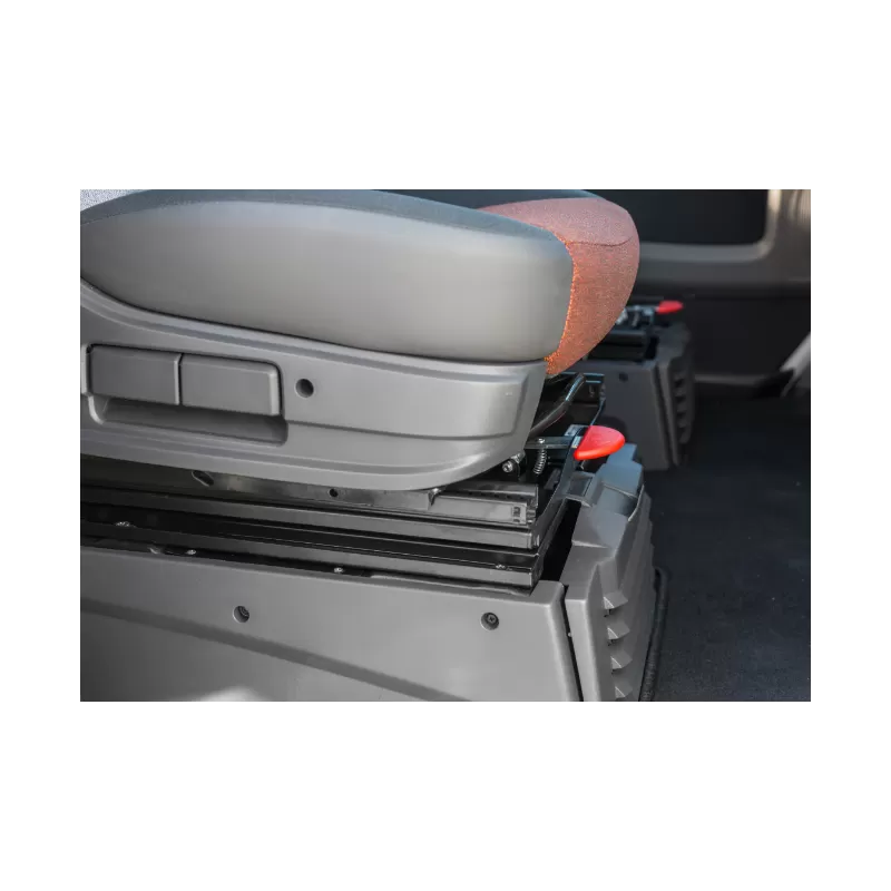 Le fauteuil conducteur étant réglable en hauteur, cela ne pose aucune difficulté pour la pose de cette embase, il en est de même pour le siège passager. À noter que l’embase convient à la fois pour le siège conducteur et pour le siège passager.