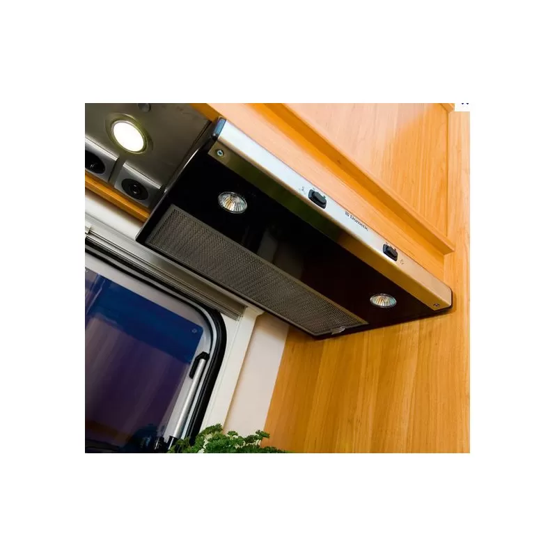 Le moteur est intégré dans le champignon de toit et non pas juste derrière le filtre augmentant considérablement la puissance et de fait l’extraction de l’air. Accessoire camping-car ou bateau de qualité DOMETIC, la hotte possède un éclairage 12V à deux niveau d’éclairage et un filtre à graisse métallique lavable.