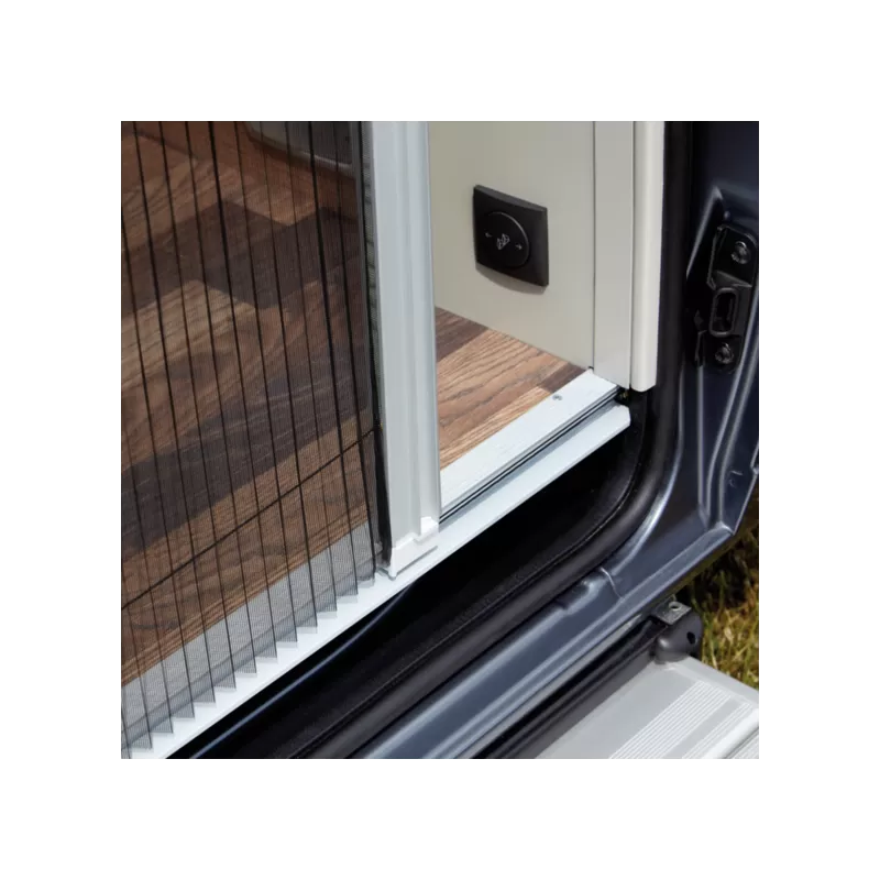 Moustiquaire de porte coulissante latérale pour les fourgons aménagés en camping-car, la Flytec FT 200 de DOMETIC convient pour les Ducato, Jumper et Boxer H2 (X250/X290).