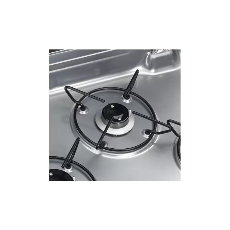 Equipement de grande qualité, les grilles pour casseroles sont amovibles afin de faciliter le nettoyage ; le chapeau des brûleurs est en acier inox. Le couvercle rabattable ne possède pas de bandes noires.