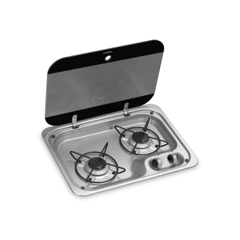 Accessoire intérieur pour les camping-cars et fourgons aménagés, DOMETIC a doté ce réchaud de toutes les sécurités indispensables : brûleurs équipés de thermocouple (arrêt du gaz automatique) et couvercle rabattable en verre sécurit résistant à la chaleur.