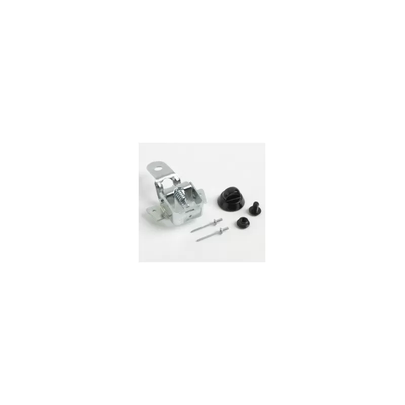 – Contenant du kit : 1 charnière, 2 rivets, un vis plastique noir, une clé de montage