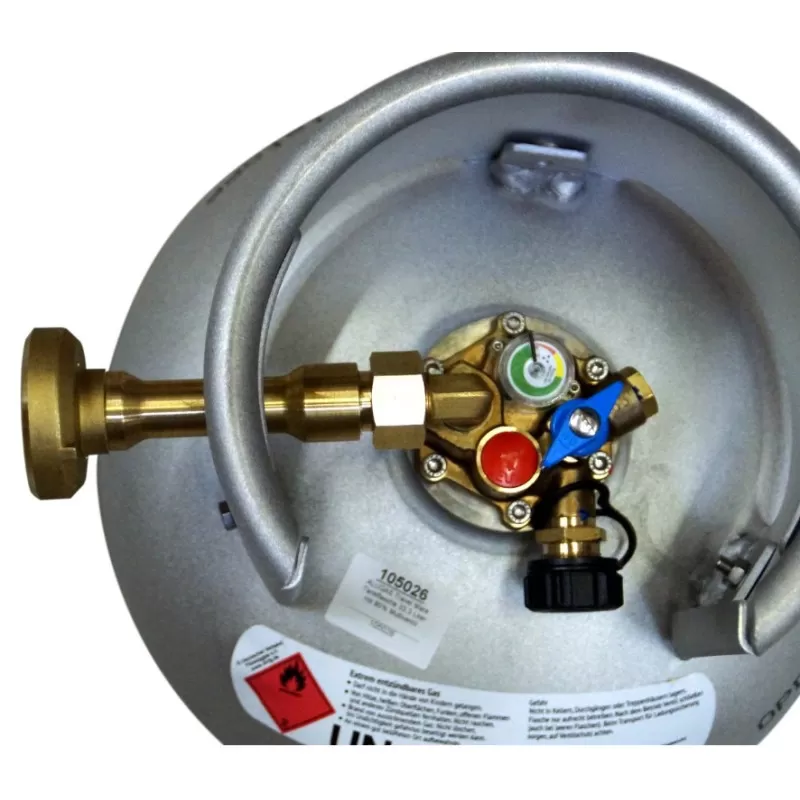 Monté directe sur la bouteille de gaz seul le pistolet de remplissage GPL reste à connecter pour remplir votre bouteille de gaz, attention cette opération de remplissage ne peut s’effectuer que dans les stations-services agréer à distribuer du GPL.