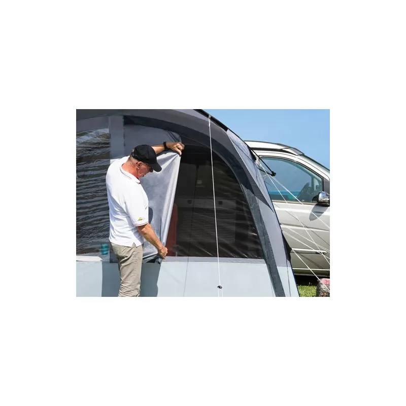 Le Rapid Air II DWT est comme son nom l’indique un auvent latéral, une extension pour van et fourgon aménagé à structure gonflable rapidement mise en place. Avec ses dimensions 340 x 240 cm, cet auvent de van est parfait pour les familles !