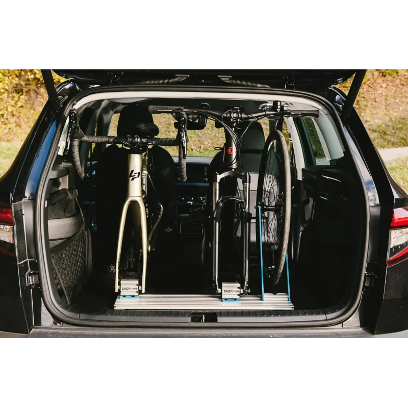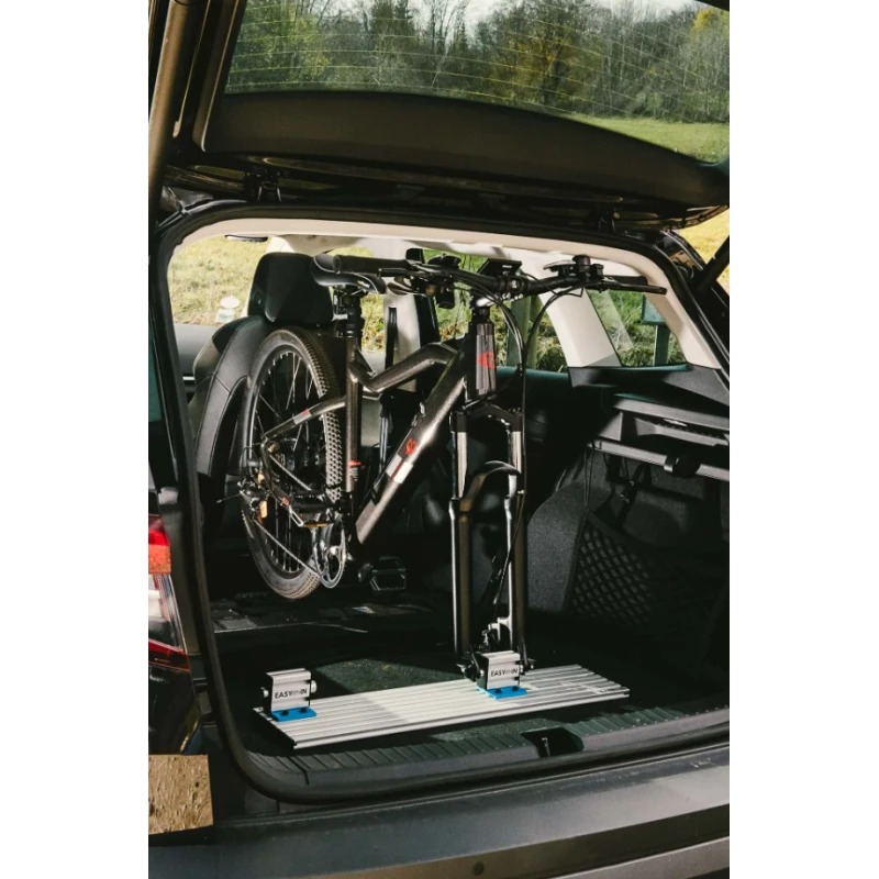 Le porte-vélos Basic de la marque EASY IN est un équipement conçu pour emporter à bord de votre camping-car 2 vélos : facile à monter, peu encombrant, il utilise la fourche de votre vélo pour assurer son transport en toute sécurité.