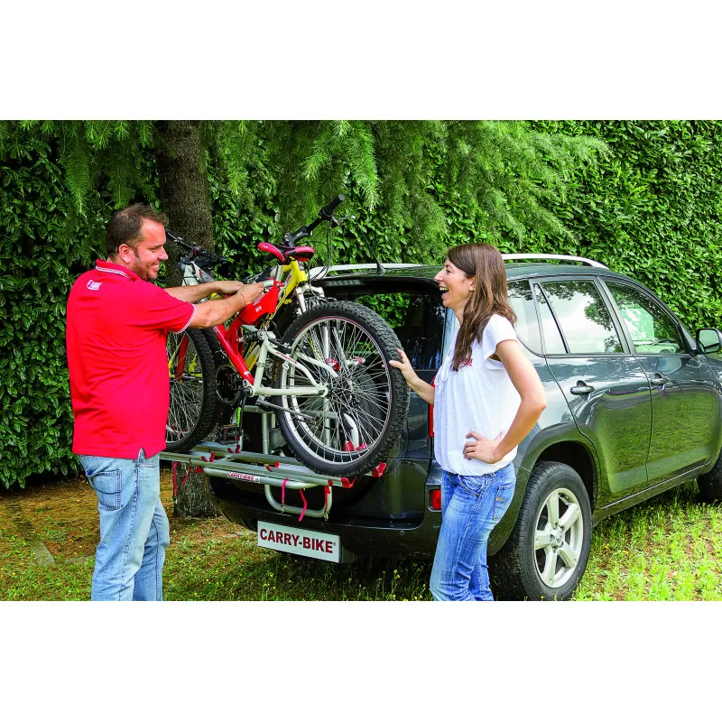En standard, le porte-vélo FIAMMA est livré avec sangle Strip Red et barres de maintien Bike-Block Pro 1 et 3. Attention, si les feux et la plaque d’immatriculation du véhicule sont cachés par les vélos, prévoir une plaque amovilbe : voir ici.