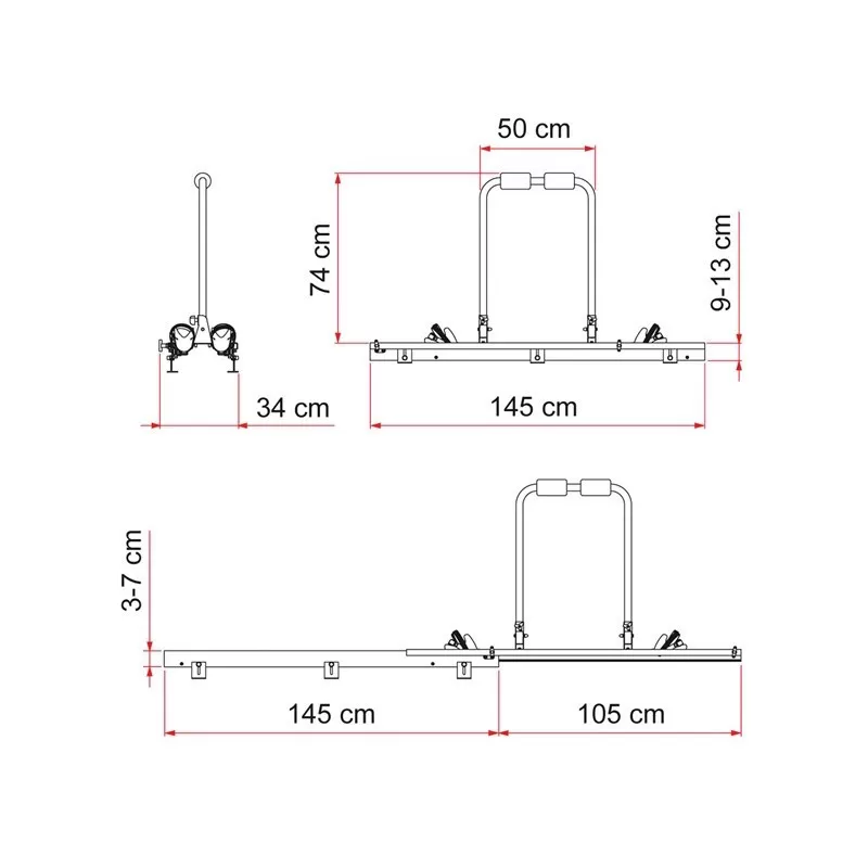 Spécifications du porte vélo de soute camping-car FIAMMA Carry-Bike Garage Standard :