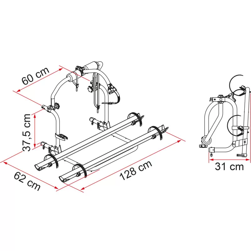 Caractéristiques techniques du porte-vélos FIAMMA Carry Bike Pro TRIGANO CI ROLLER TEAM pour camping-car :