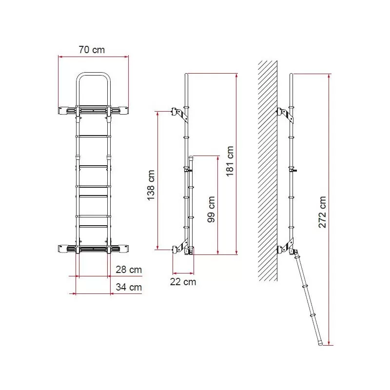 – Dimensions hors-tout : 272 x 34 cm (dépliée et sans les fixations)