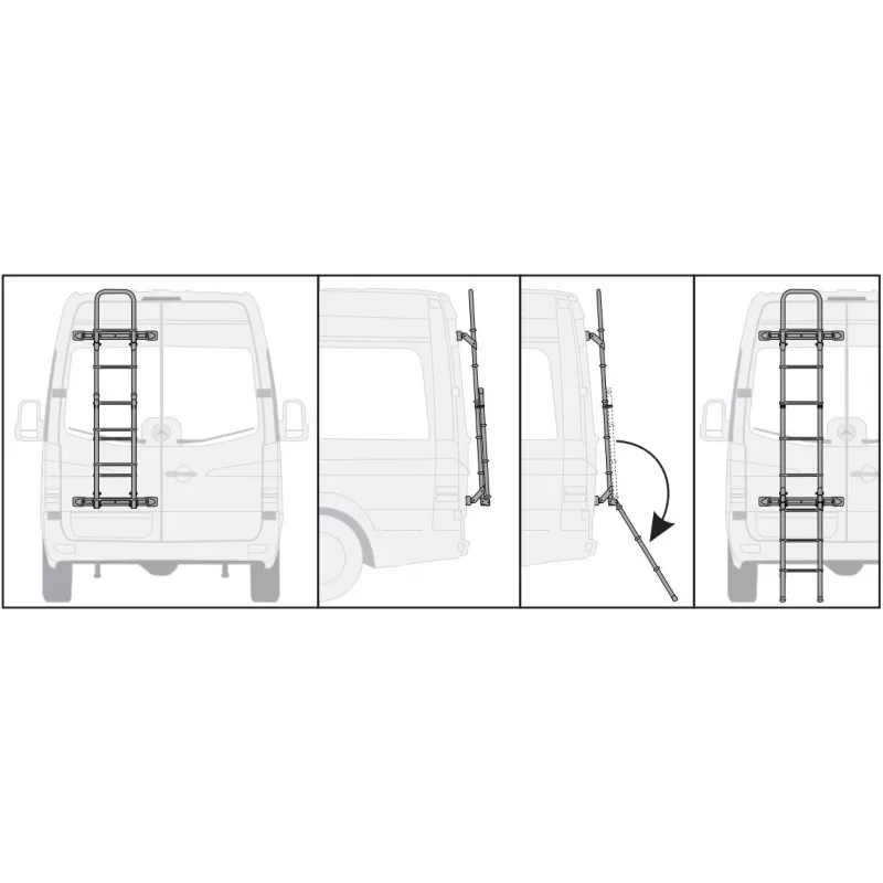 Cette échelle robuste et légère à la fois a été conçue pour répondre aux besoins des détenteurs de fourgons aménagés MERCEDES Sprinter et Crafter. Pour ceux qui possèdent déjà un porte-vélo Carry-Bike 200 DJ, l’échelle est tout à fait compatible. Réalisée avec des tubes en aluminium anodisé de 30 cm de diamètre, cette échelle possède également une structure rabattable.