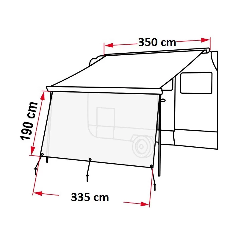 Cette paroi frontale s’installe facilement grâce aux cordes et aux piquets livrés en standard avec le produit. Le Sun Viex XL 350 est compatible pour les stores de camping-cars et fourgons aménagés FIAMMA F45 et F45s de 3,50 mais aussi sur les stores F80, F65 & Caravanstore XL. Sa hauteur est de 190 cm.
