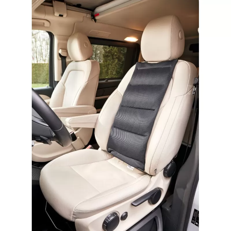 Très pratique si vous roulez beaucoup, ce rembourrage est universel et s’adapte sur l’immense majorité des sièges du marché ; il permet d’ajouter du support à votre dos tout en le laissant mieux respirer afin d’éviter la transpiration. Tout le « secret » de cet équipement pour camping-car est là : à l’intérieur on retrouve des ressorts lamelles qui assure un maintien du dos et un passage d’air. Le tissu 3D AirMesh respirant qui recouvre l’ensemble participe également à une meilleure circulation de l’air.