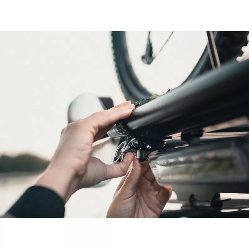 Ce support s’installe très facilement et ne nécessite pas de perçage. Il vous suffit de le placer sur une des barres latérales de la galerie de toit FRONT RUNNER et d’y fixer ensuite votre outil ou équipement de sport.