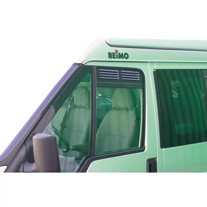 Aérez et ventilez votre fourgon aménagé ou camping-car sur porteur FORD Transit de 2000 à 2013 de manière efficace et sécurisante ! Avec les grilles d’aération REIMO Airvent, vous laissez en permanence entrouvertes les vitres avant (de l’habitacle) de votre véhicule sans que pour autant celui-ci reste ouvert. Votre camion est donc fermé à clé en permanence.