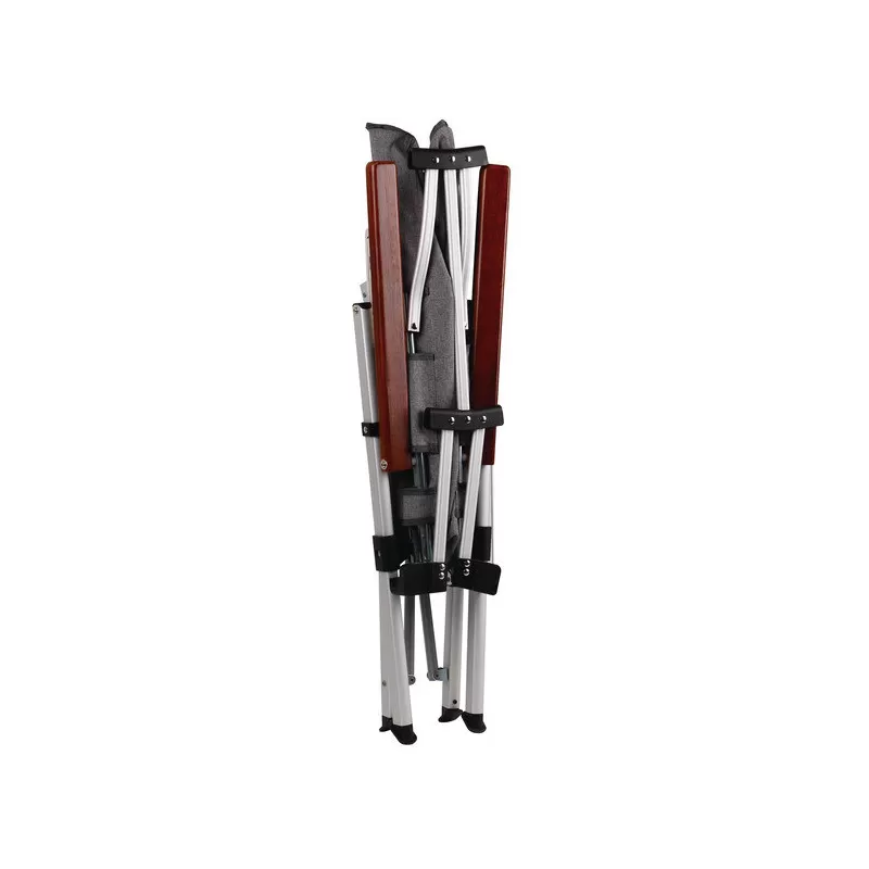 Cette magnifique chaise pliante tendance est très compacte et saura trouver facilement sa place dans vos soutes de fourgons et camping-car. Ce fauteuil pliant est doté d’un tissu gris chiné avec une étiquette en cuir et de 2 accoudoirs en bois brun qui lui confère un design exclusif. Son dossier réglable sur 4 positions saura vous apporter un confort sans égal associé à une assise confortable.