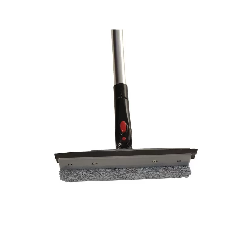 Raclette lave-vitres avec manche télescopique et brosse double mousse + raclette, conçue pour le nettoyage des pare-brises des camping-cars.
