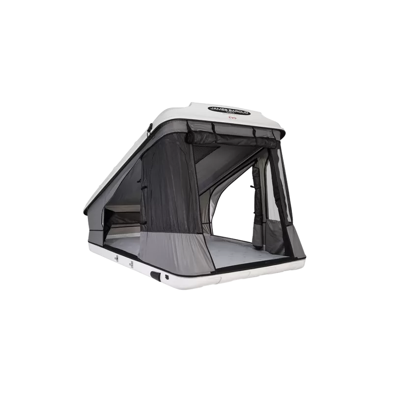 La tente Space Evo de chez JAMES BAROUD est un espace de couchage confortable doté d’un matelas de 28 kg/m² pour 2 personnes de 140 x 200 cm. La tente Space s’ouvre en 4 minutes seulement grâce à ses 2 vérins AL-KO très puissants.