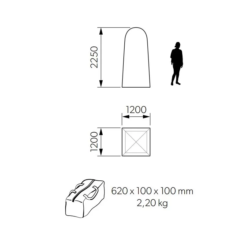 Caractéristiques techniques de la tente pour toilette nomade KAMPA Loo-loo :