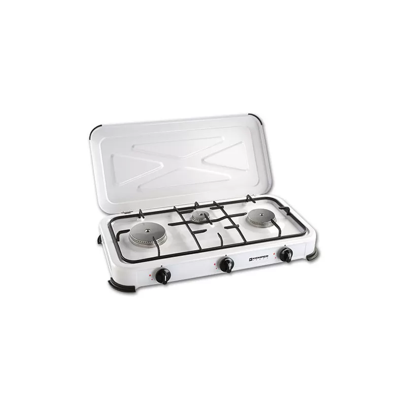 Le réchaud à gaz KEMPER possède 3 feux pour une puissance totale de 3000 W ! Avec 3 feux de puissance différente, vous pourrez aisément préparer tous vos repas lors de vos voyages en toile de tente ou caravane. Les réchauds KEMPER sont préconisés pour être installés en extérieur car ils sont amovibles.