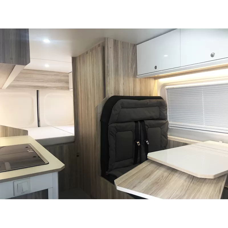 Le panneau d’habillage de chez MASIS est dimensionné à la forme de votre fourgon aménagé Fiat Ducato, Peugeot Boxer, Citroen Jumper depuis 2006 à nos jours et se positionne facilement derrière le siège conducteur là où se trouve votre banquette et votre table selon votre aménagement intérieur.