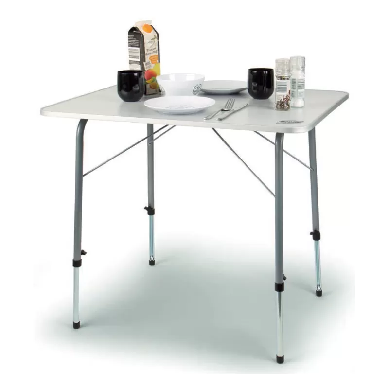 Table MC CAMPING Table Eik de 120 x 60 cm idéale pour 4 à 6 personnes avec pieds pliables et réglables en hauteur. Cette table de plein air est idéale pour le camping-car ou le camping.