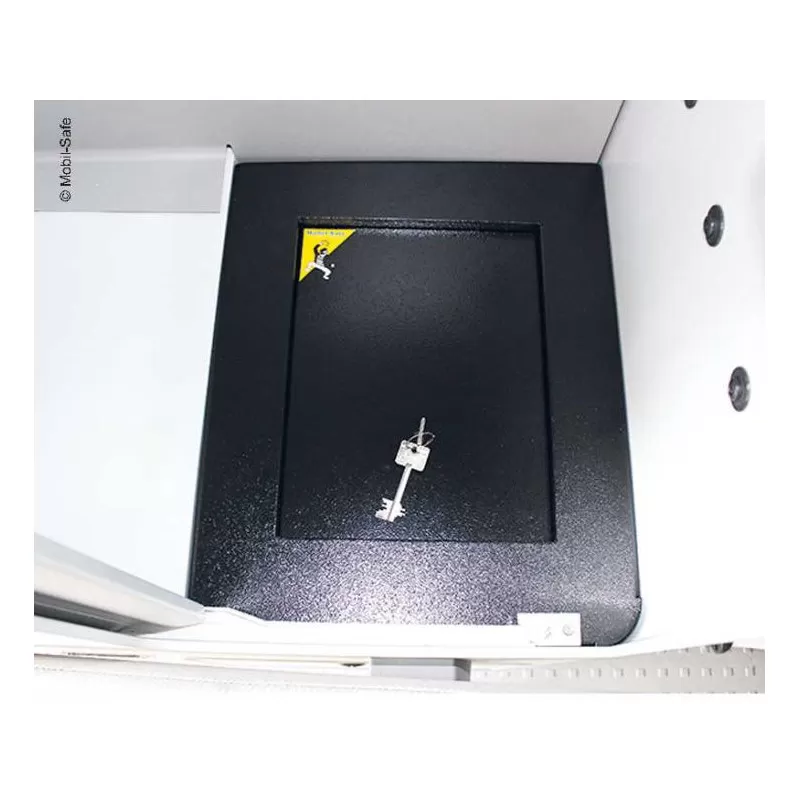 Le coffre-fort de chez MOBIL-SAFE est un équipement conçu pour la sécurité à bord en fourgon aménagé et plus particulièrement à bord du VOLKSWAGEN Coast ou Ocean car il est spécialement adapté pour être installé dans le plancher de l’armoire. Ce coffre vous permettra de sécuriser tous vos objets de valeur ainsi que votre argent lorsque vous partez en vacances. Le coffre-fort est à visser au sol et sa large porte est fermé à clé empêchant ainsi toute effraction.