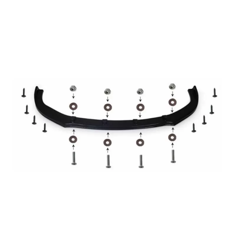 La lame de pare choc se rajoute sur le pare choc d’origine à l’aide de vis + colle silicone fourni avec le produit.