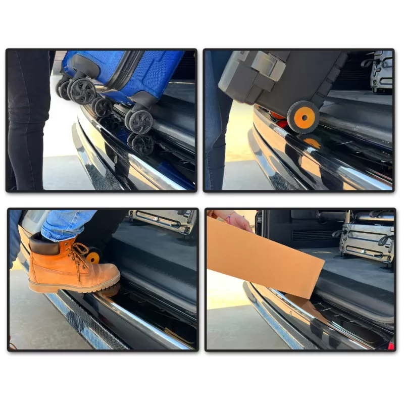 Idéal pour apporter une touche personnalisée au véhicule, la protection s’installe de manière simple grâce à un ruban adhésif double face & aucune découpe ni perçage est nécessaire. Indispensable pour l’aménagement & la protection du véhicule, cette protection joue le rôle de seuil de coffre & permet de protéger l’arrière du fourgon des chocs & de la poussière.