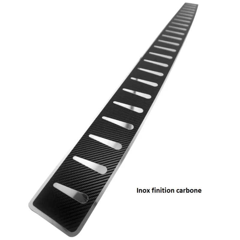 Proposé en plusieurs versions, OMAC propose sa protection de seuil de coffre en carbone (standard, bleu, rouge, gris) ou en inox avec une finition carbone.