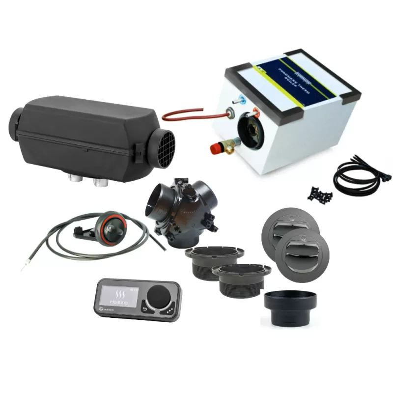 Découvrez le kit boiler therm 3 L PUNDMANN & chauffage Air 2D AUTOTERM prêt à installer. Idéal pour réchauffer l’habitacle du van aménagé, le chauffage autonome 12V ou 24V au diesel AUTOTERM permet d’augmenter la température intérieure. Relié sur le réservoir principal du véhicule, le chauffage diesel permet de réchauffer & recycler l’air. Vous baissez donc le taux d’humidité & gagnez en confort ! Grâce au panneau de commande Comfort Control AUTOTERM, vous pourrez régler & contrôler la puissance de chauffe au plus juste grâce au véritable thermostat intégré.