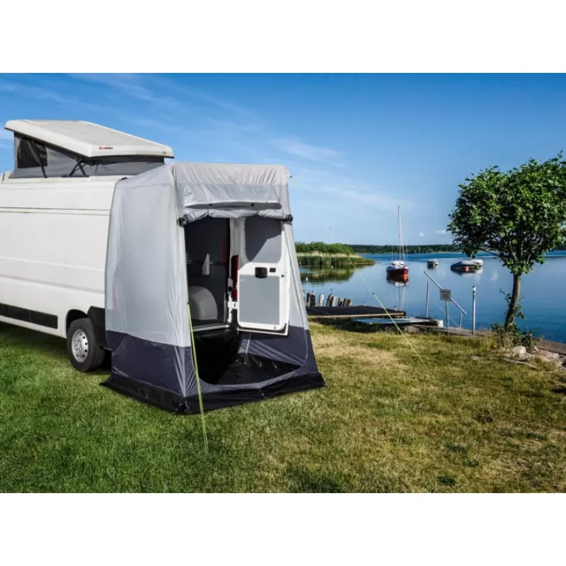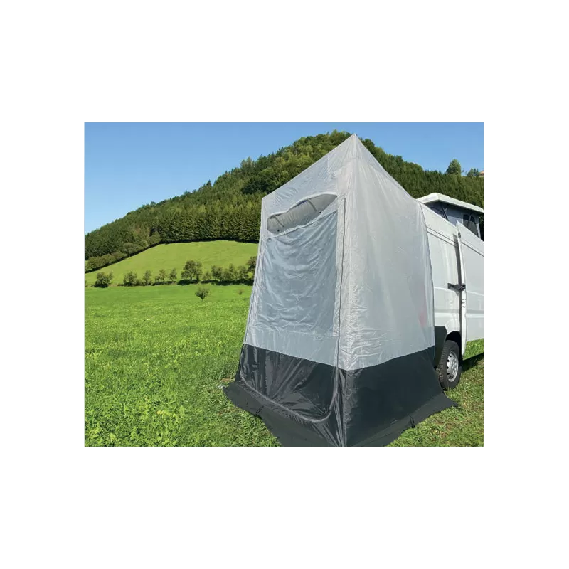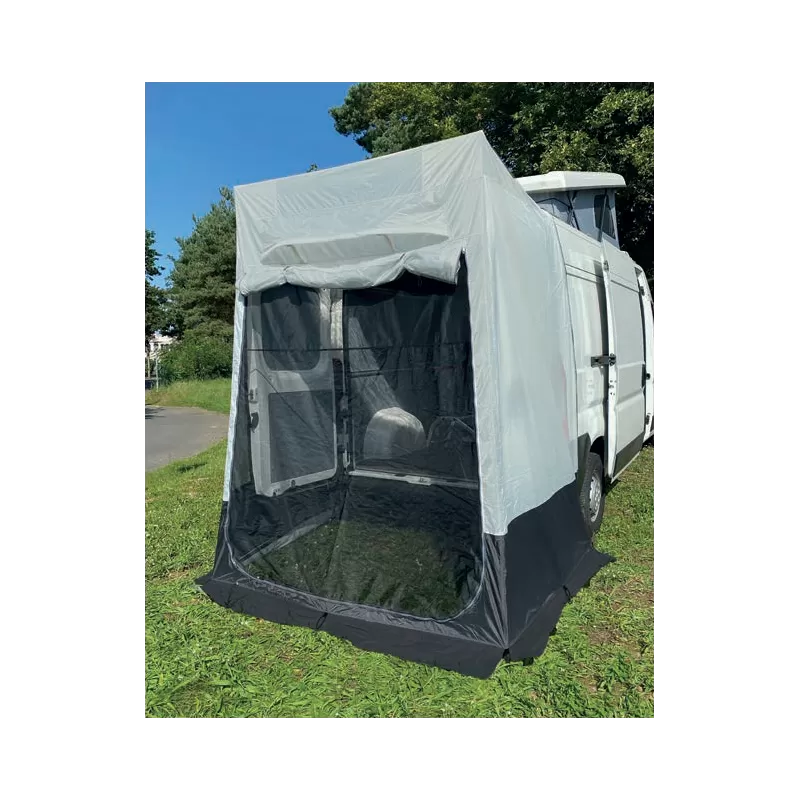 Le sas arrière Ducatissimo Prenium est une tente/sas arrière en toile à fixer sur les portes arrières des fourgons aménagés FIAT Ducato, Boxer, Jumper. Cette toile permet une extension pratique et rapide lors des arrêts prolongés en camping-car.