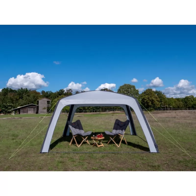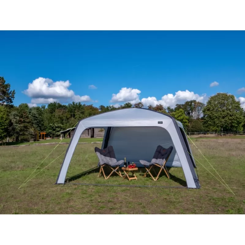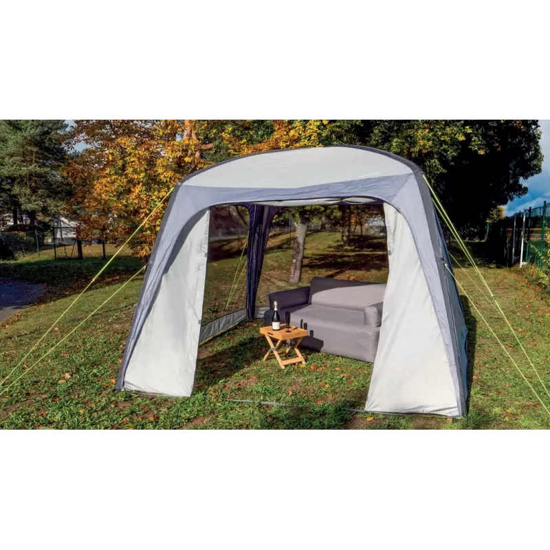 La Linosa 400 x 400 cm de REIMO est une grande tonnelle à structure gonflable et paroi latérale idéale pour le camping-car, le camping ou même le jardin !