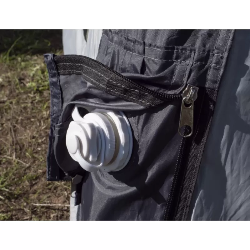 L’autre point fort est également sa structure gonflable ! Le temps ou il fallait repérer tous les poteaux au montage et démontage est désormais révolu. Ce modèle de tonnelle pour camping fait donc au sol 400 x 400 cm, c’est le plus petit grand de la gamme car REIMO propose également un 350 x 350 cm et un 300 x 300 cm.
