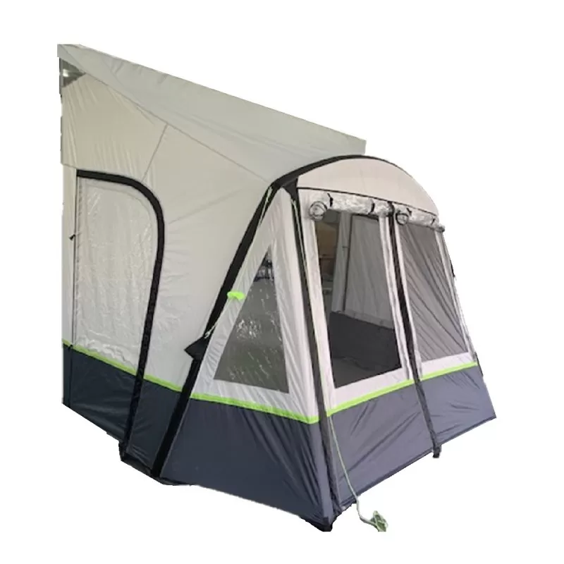 Parfait pour ceux qui veulent augmenter leur espace de vie facilement, cet auvent pour camping-car est fait pour ceux qui bougent régulièrement pendant la saison. En effet, avec sa structure pneumatique gonflable il se met en place et s’enlève rapidement. Avec ses dimensions de 350 x 250 cm, il offre une très bonne surface au sol.