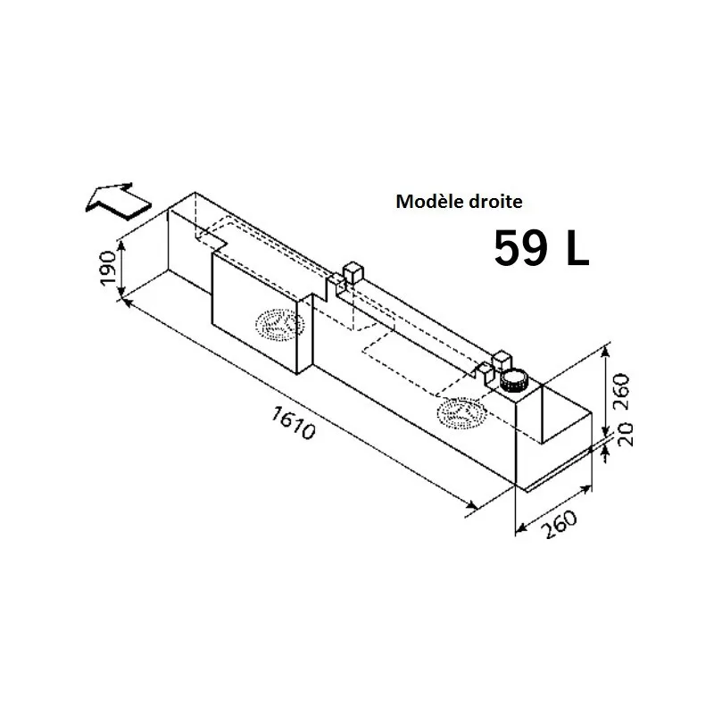 – Dimensions modèle droite : L 1610 x l 260 x H 260 mm