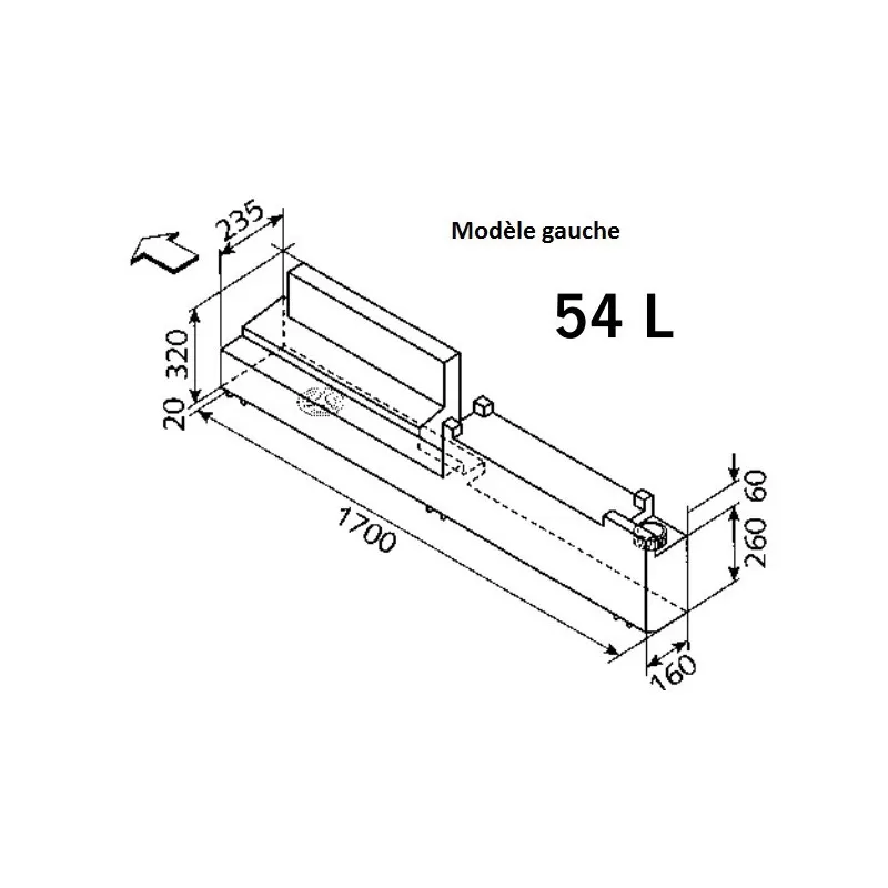 – Dimensions modèle gauche : L 1700 x l 160/235 x H 260/320 mm