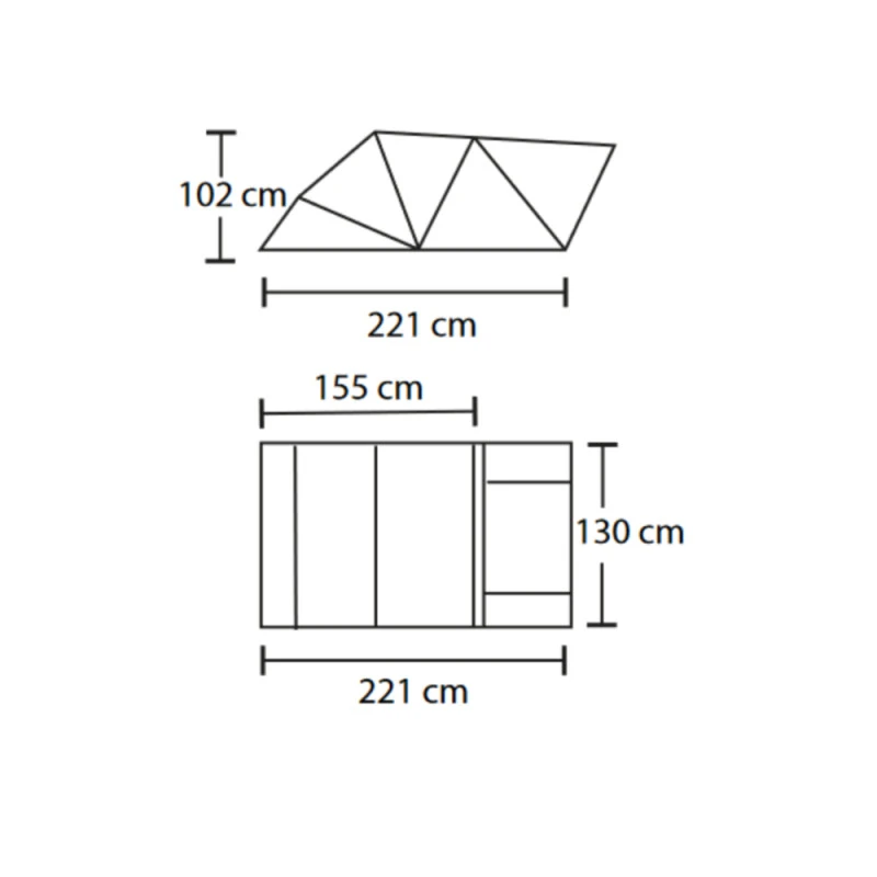- Dimensions tente ouverte : 212 x 132 x H 102 cm