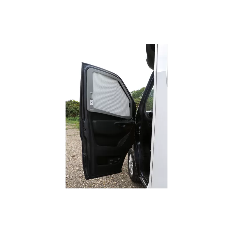 Conçu spécialement pour les Mercedes Sprinter, pour les versions camping-cars & fourgons aménagés depuis 2019, le rideau extérieur de camping-car occultant & isolant vient se fixer sur les montants du véhicule. Le store reste donc constamment en position rangé dans ses montants sans gêner la vue du conducteur ou du copilote.
