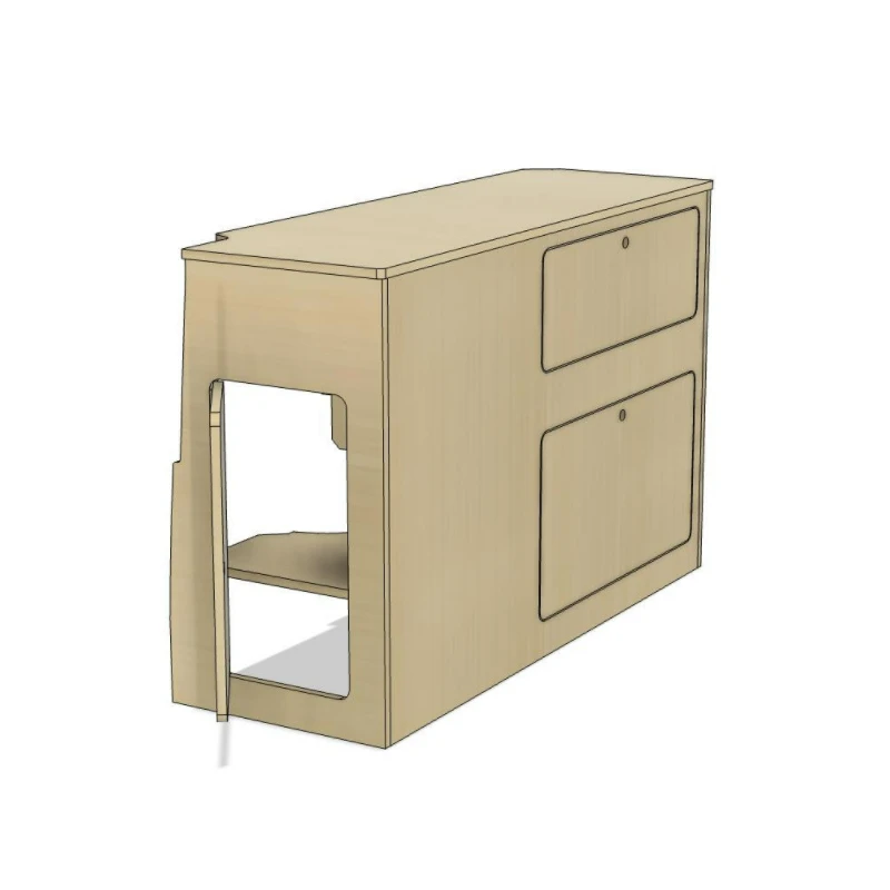 Le meuble latéral a spécialement été conçu pour les Volkswagen Transporter T5 & T6. Fabriqué en contreplaqué peuplier, ce produit est idéal pour réaliser un meuble cuisine dans le fourgon aménagé. Son large plan de travail peut être découpé pour ajouter un évier & un réchaud. Un réchaud portatif peut être utilisé par soucis de simplicité ! Pour s’harmoniser au mieux avec votre intérieur, le meuble pourra être peint ou huilé !