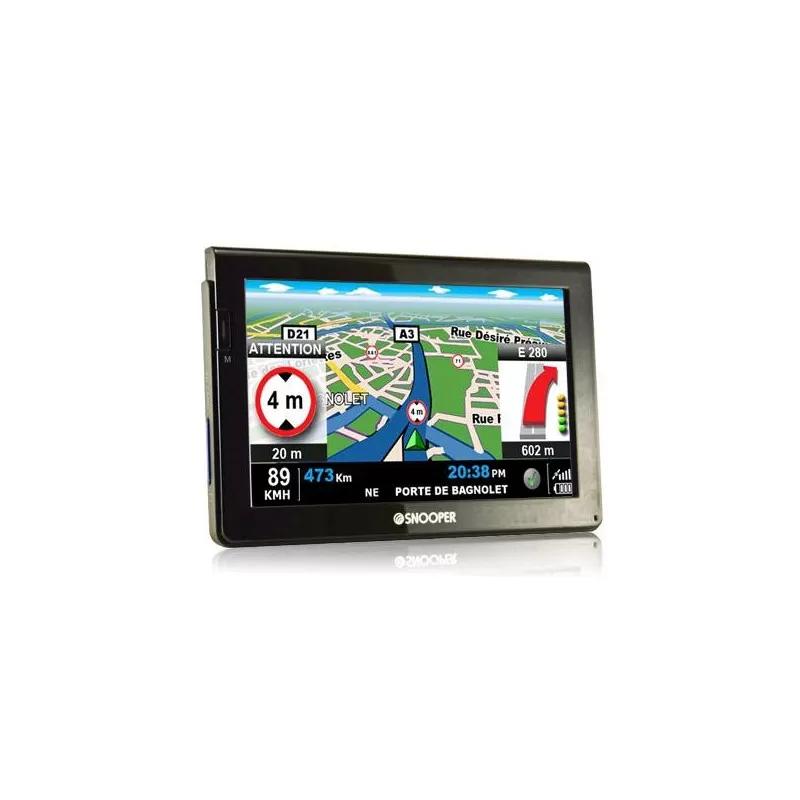 Avec son grand écran de 17 cm de diagonale, le SNOOPER CC7000 est un GPS complet très agréable à utiliser. En standard, il est livré avec une carte routière Europe avec prise en compte du gabarit de votre camping-car. La caméra de recul se déclanchera automatiquement lorsque vous passerez la marche arrière.