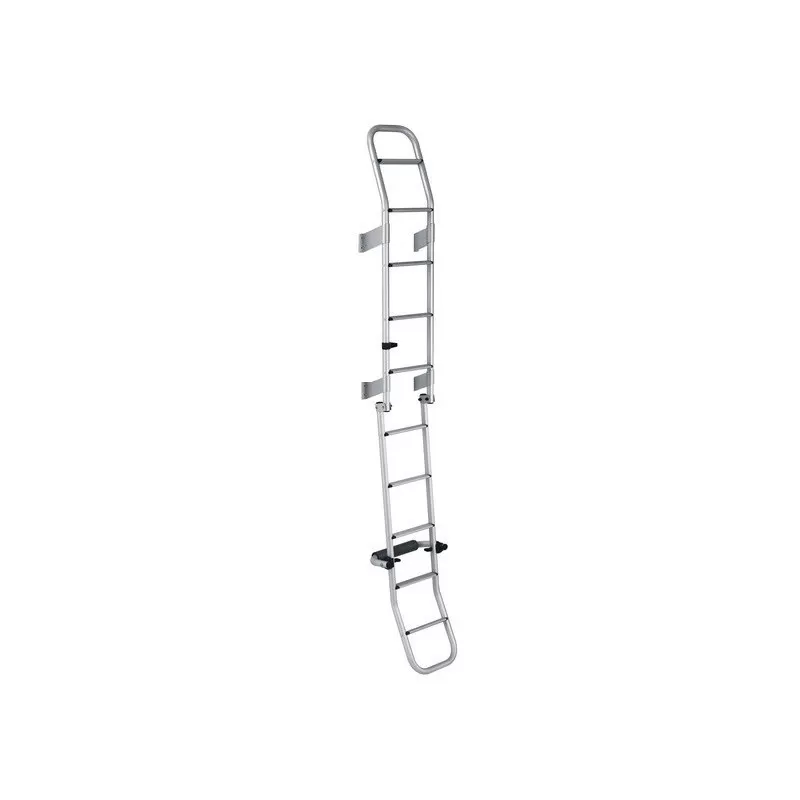 Avec ses 10 marches, cette échelle est suffisament grande pour aller du sol jusqu’au toit du camping-car. Elle offre donc un accès plus facile au coffre, galerie ou accessoires installés sur votre toit. Une fois pliée, elle ne fait que 125 cm de hauteur. L’installation est assez simple : 8 trous et un peut de mastic type SIKA Sikaflex 291 et le tour est joué.