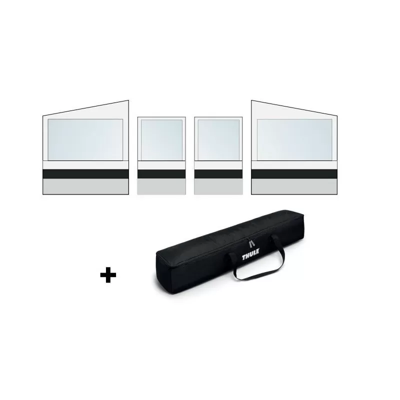 Voici un pack bien pratique pour tous les fourgons équipés d’un store latéral extérieure THULE 4900 & 5102 ! En effet, ce pack complet contient deux parois et deux façades pour s’abriter du vent ou de la pluie lors de vos séjours en vacances. Compatible sur le 4900 & 5102 de THULE que l’on retrouve sur de nombreux fourgons : Jumpy, T5/T6, Custom et Trafic notamment.