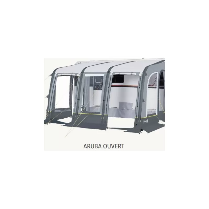 Le auvent Aruba 390 convient pour les façade caravane de 390 cm. Facile à installer grâce aux arceaux gonflables, cet équipement extérieur vous permet de profiter d’un espace de vie supplémentaire en camping.