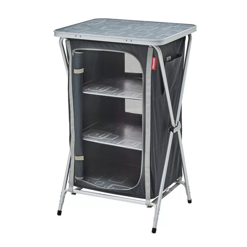 Meuble pliant conçu pour ranger vos accessoires lors de vos vacances en caravane. Ce meuble est à disposer sous votre auvent de caravane ou sous le store de votre camping-car. Pliant, il se range facilement dans sa housse de transport qui se loge dans n’importe quelle soute. Avec son armature en aluminium, ce meuble est léger mais reste fonctionnel grâce à ses 3 étagères de rangement avec tablettes.